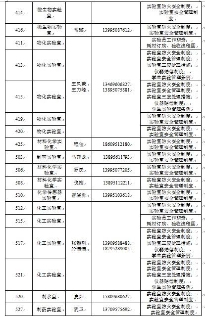 5、学院实验室的地点和实验室责任人以及联系方式和制度列表。
