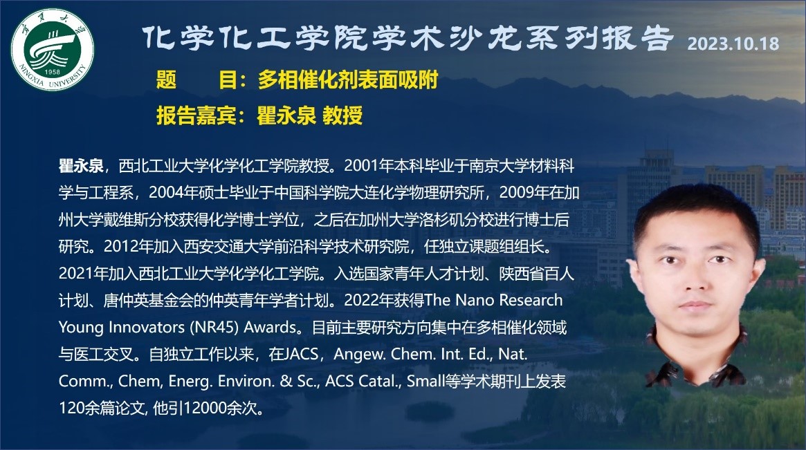 2023年学术沙龙报告会在科技楼C219举行。国家青年人才计划、陕西省百人计划、唐仲英基金会的仲英青年学者计划,2022年The Nano Research Young Innovators (NR45) Awards获得者,西北工业大学瞿永泉教授做了题为“多相催化剂表面吸附”的报告。学院部分青年教师及研究生、本科生近50人参加了此次学术活动。报告会由香港六合彩资料网站