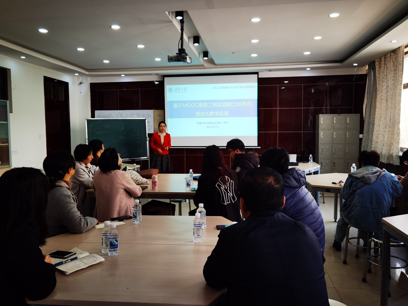 4月15日下午2:30化学工程与工艺教研组全体教师在工科C楼202开展了学校基层教学组织建设年系列活动,进行线上线下相结合的课程建设经验分享与交流。