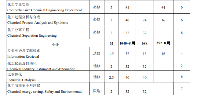 专业课:化工工艺学、化工设计概论 、传递过程原理、化工过程分析与合成等。