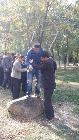 化学教师教育学科组为“国培计划(2014)”—中西部项目宁夏大学置换脱产研修班化学班学员开展了“情感,风雨人生路”的户外拓展训练活动。此次活动由吴晓红老师组织、林枫老师协助,化学教学论研究生和实习生肖敏、孙婕、任斌、黄金莎、李文婷、祁龙、钱艳红、李金来等人参加。