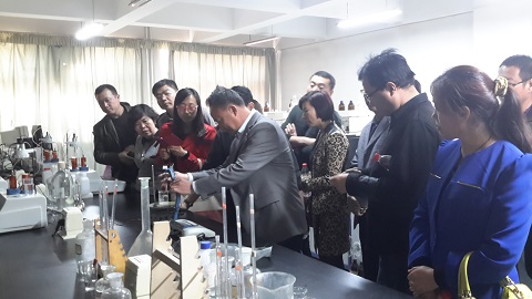,化学院老师表示热烈的欢迎,在纳鹏军老师、杨文远老师、杨天林老师的带领下参观了实验中心的四大实验室,纳鹏军老师对各个实验室进行了系统的讲解大型实验仪器在教学中的应用,并讲解有关中学实验开发的前沿,学员认真听取老师的讲解,及时进行提问,对有些问题进行深入讨论。进入无机实验室时,学员们积极向杨天林老师请教中学化学中疑难问题的实验探究方法,向杨文远老师请教手持技术实验在中学教学中的开发与应用。