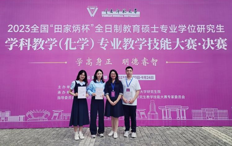 为提高教育硕士的实践教学能力,充分发挥学科竞赛的引领作用。由全国教育专业学位研究生教育指导委员会主办的2023年“田家炳杯”全日制教育硕士学科(化学)专业教学技能大赛决赛于2023年9月22-24日在云南师范大学举办。